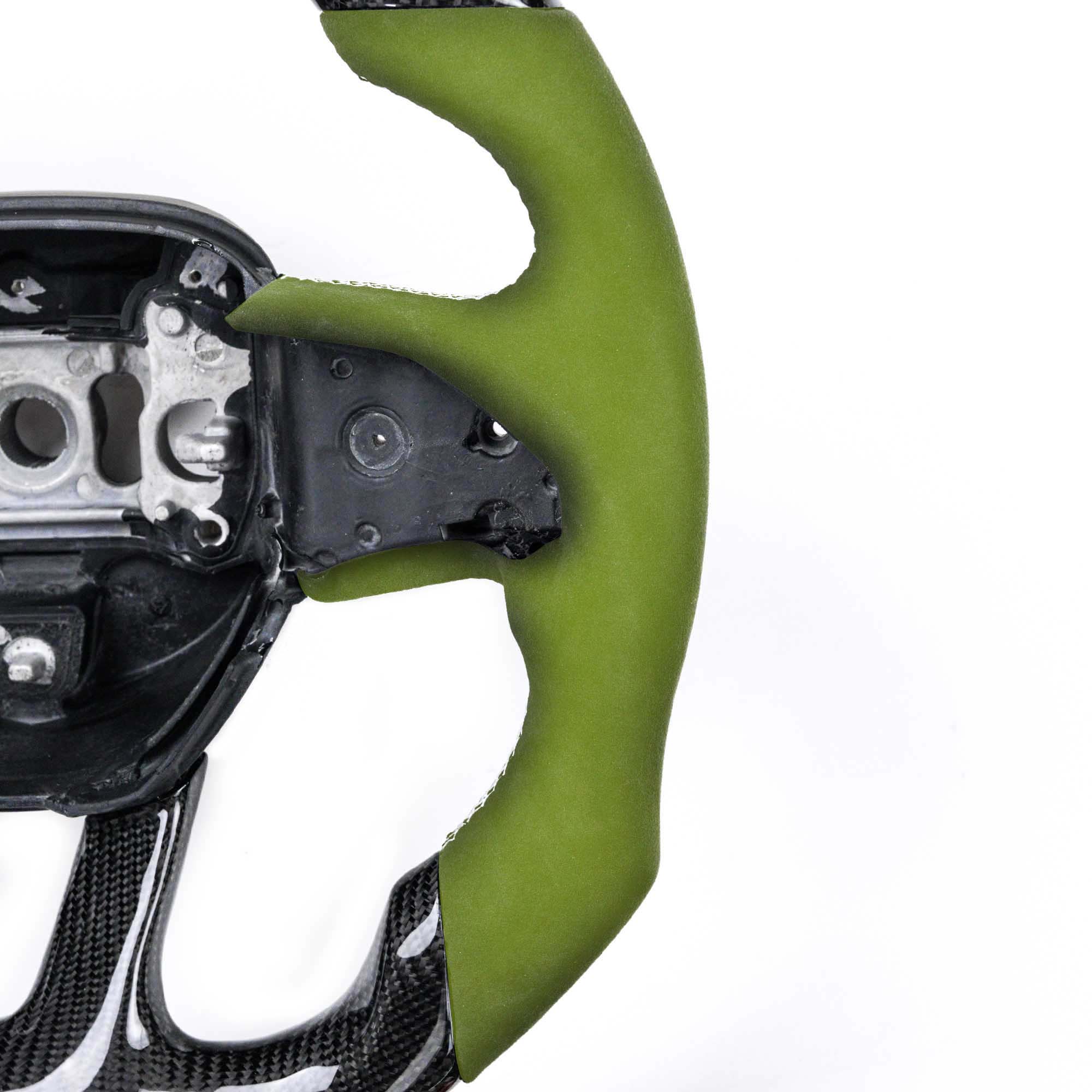 Each Vicrez Steering wheel consist of the skeleton, made out of a strong metal such as magnesium, aluminum or steel. The skeleton is covered by a highly durable, soft, foam material along leather or alcantara, Injection molding is used to apply the polyurethane on the skeleton.