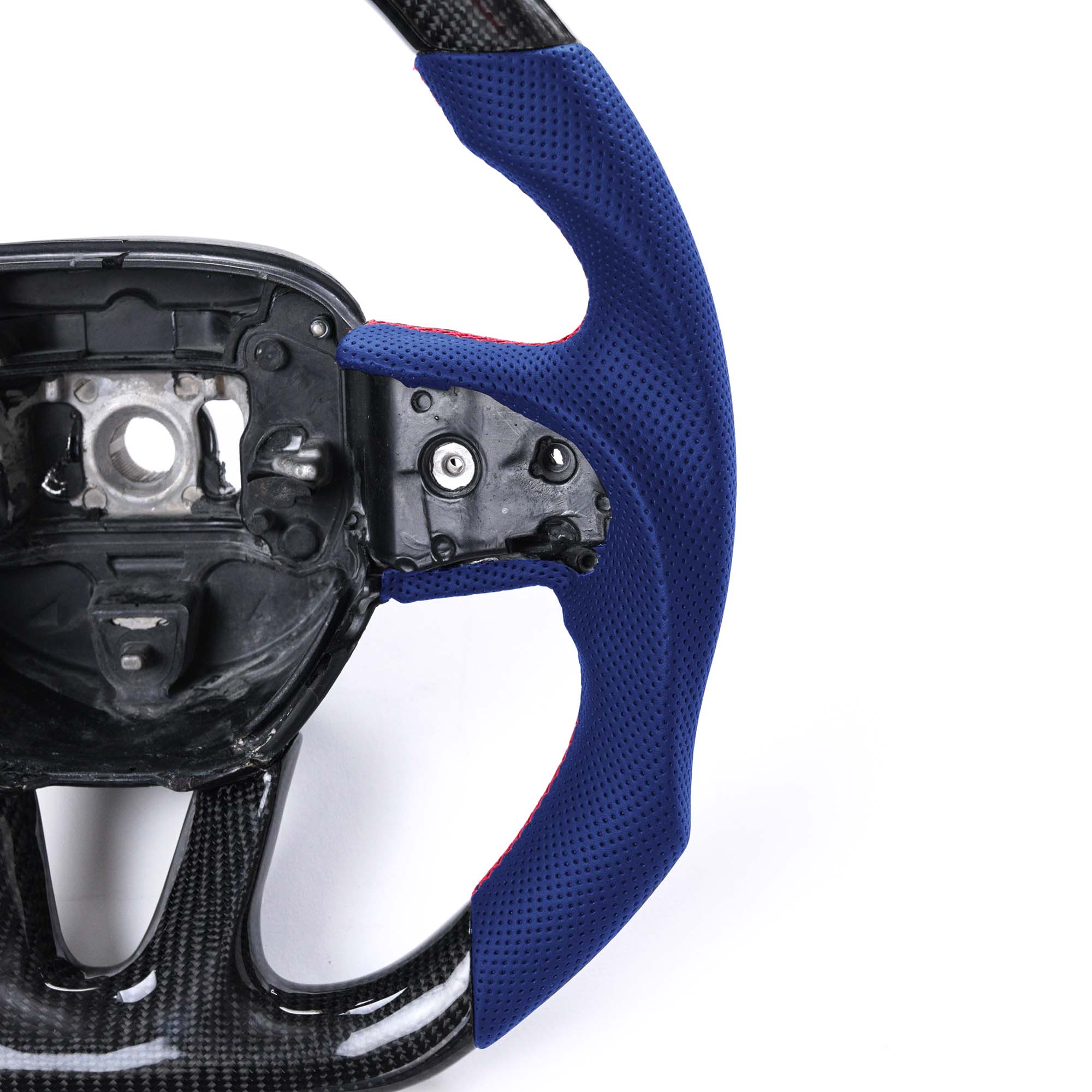 We design our steering wheels for car enthusiasts who love their cars and love to drive. Every curve, stitch, and panel was carefully designed for comfort and style. Our steering wheels are made to completely match with your OEM steering wheel core so that no matter the year, the buttons will fit perfectly. The surface finish, stitching, leather color and 12 o’clock ring on non-LED steering wheels are all customizable.