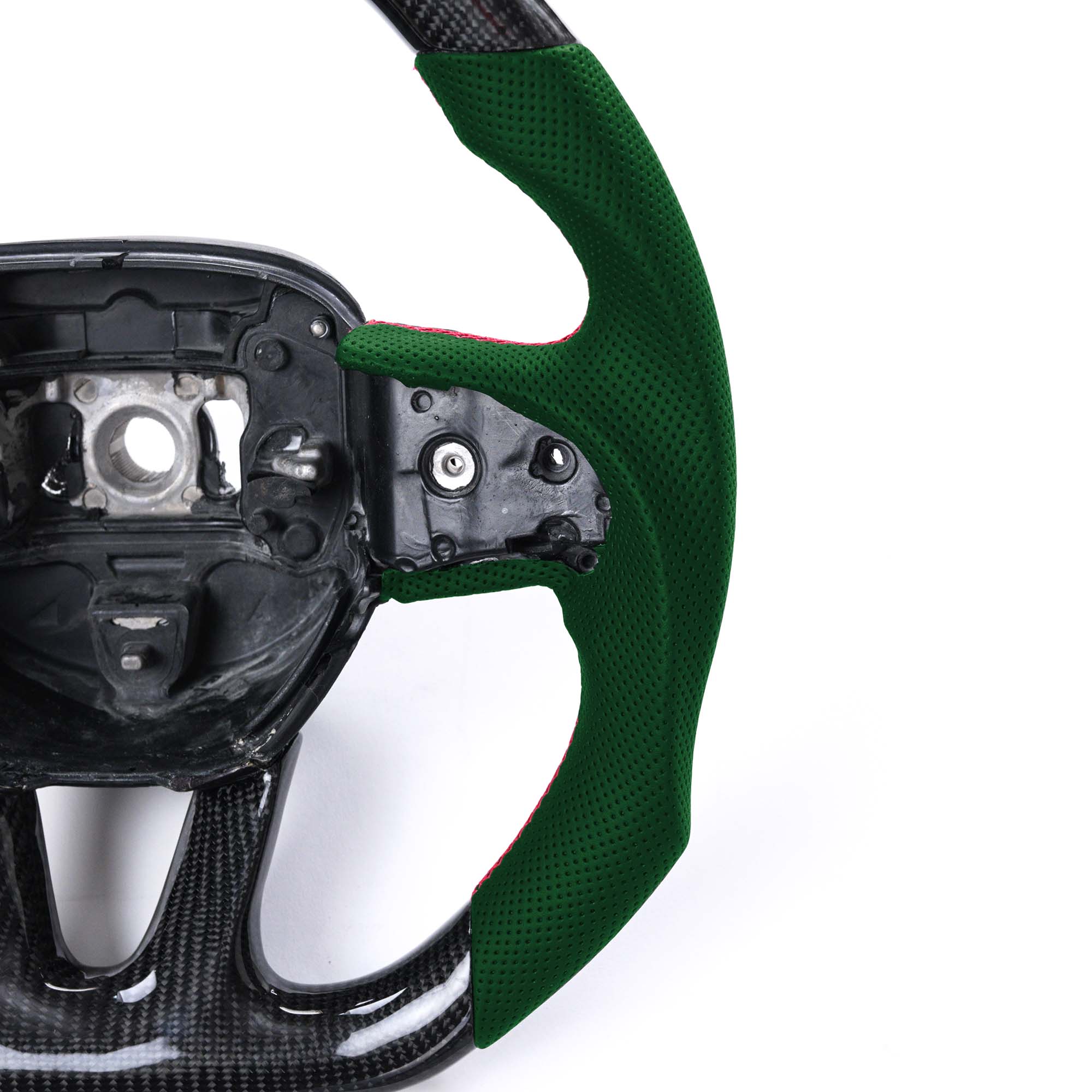Each Vicrez Steering wheel consist of the skeleton, made out of a strong metal such as magnesium, aluminum or steel. The skeleton is covered by a highly durable, soft, foam material along leather or alcantara, Injection molding is used to apply the polyurethane on the skeleton.