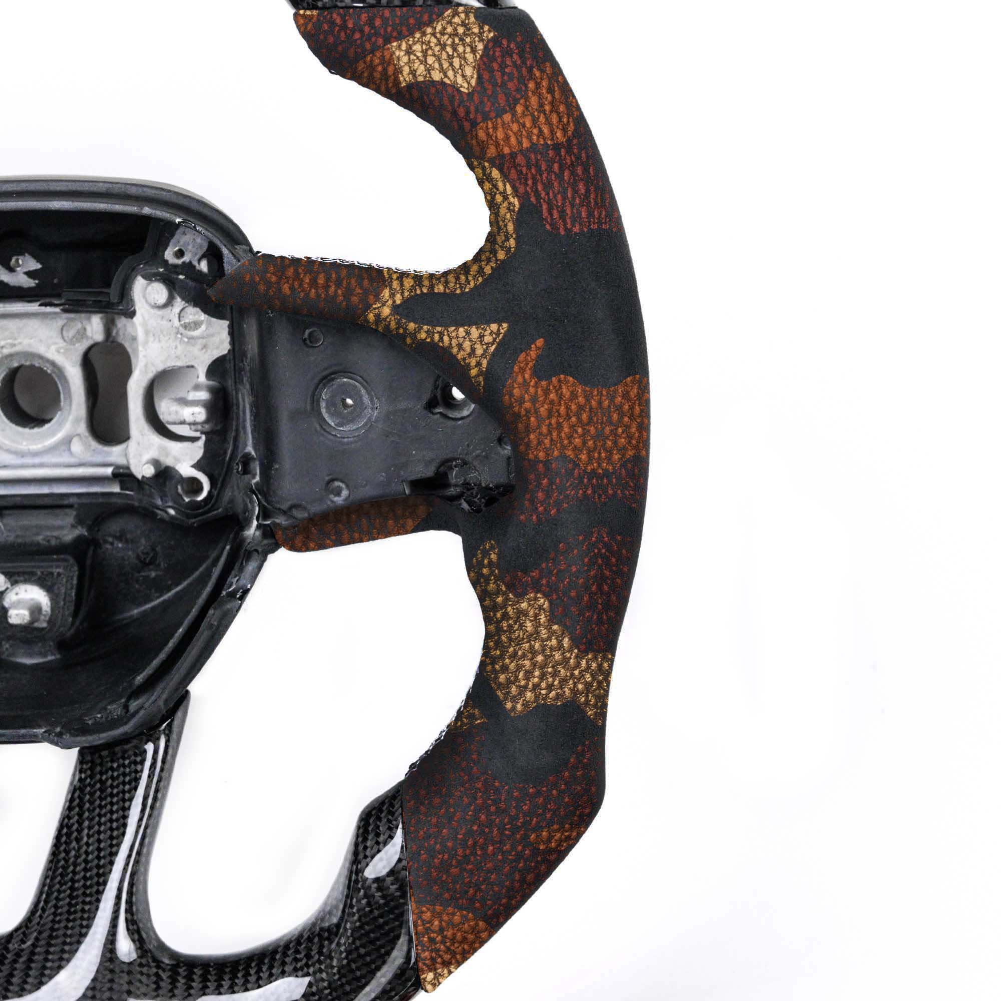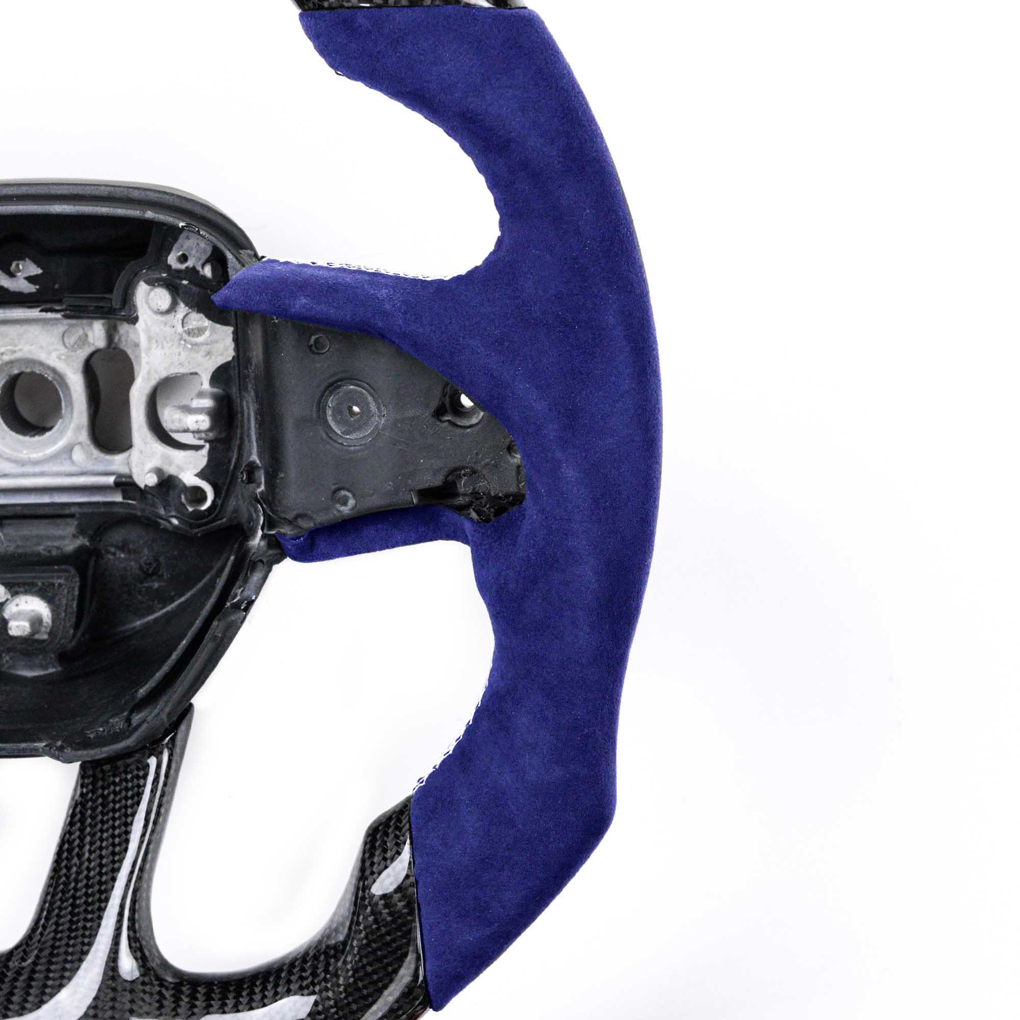 We design our steering wheels for car enthusiasts who love their cars and love to drive. Every curve, stitch, and panel was carefully designed for comfort and style. Our steering wheels are made to completely match with your OEM steering wheel core so that no matter the year, the buttons will fit perfectly. The surface finish, stitching, leather color and 12 o’clock ring on non-LED steering wheels are all customizable.